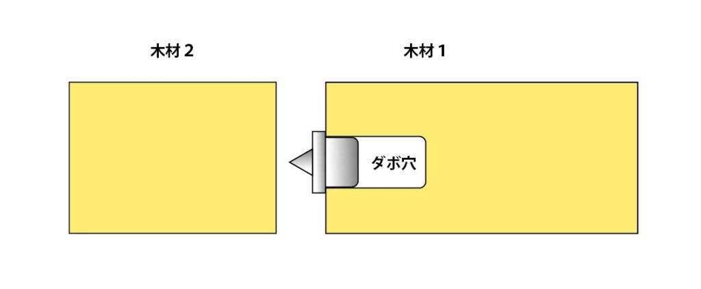 木材1に予め穴をあけて、マーキングポンチを差し込み、木材2に打ちつけると、正確な場所に跡が付くので、そこに穴を作るだけで、ちゃんと合います。