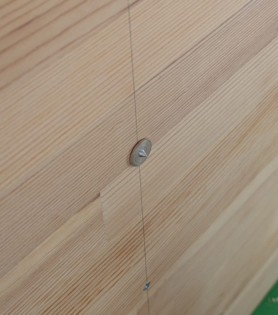 この設計図に沿って、集成材とツーバイ材を使って部材を作っていきます。